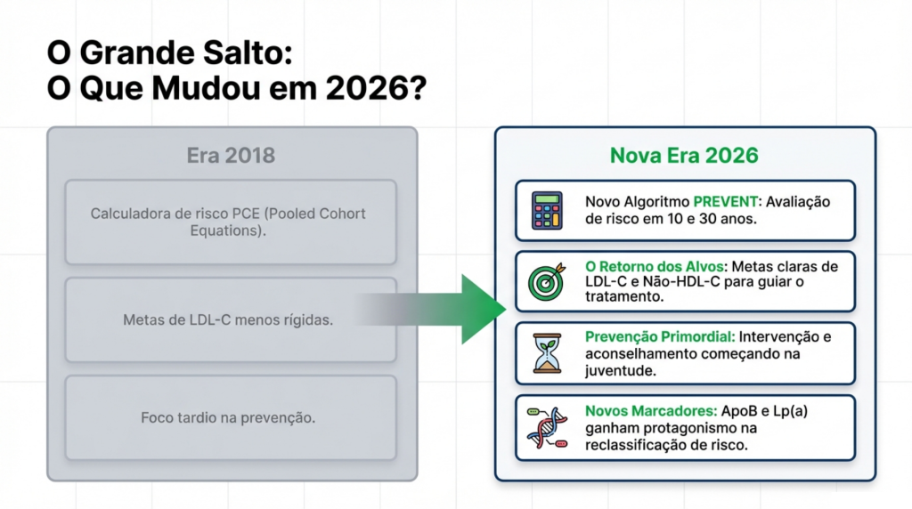 Acaba de ser lançada a nova Diretriz de Dislipidemia de 2026 (ACC/AHA), substituindo o guia de 2018. Ela não é apenas uma atualização; é uma mudança completa na forma como protegemos o seu coração.